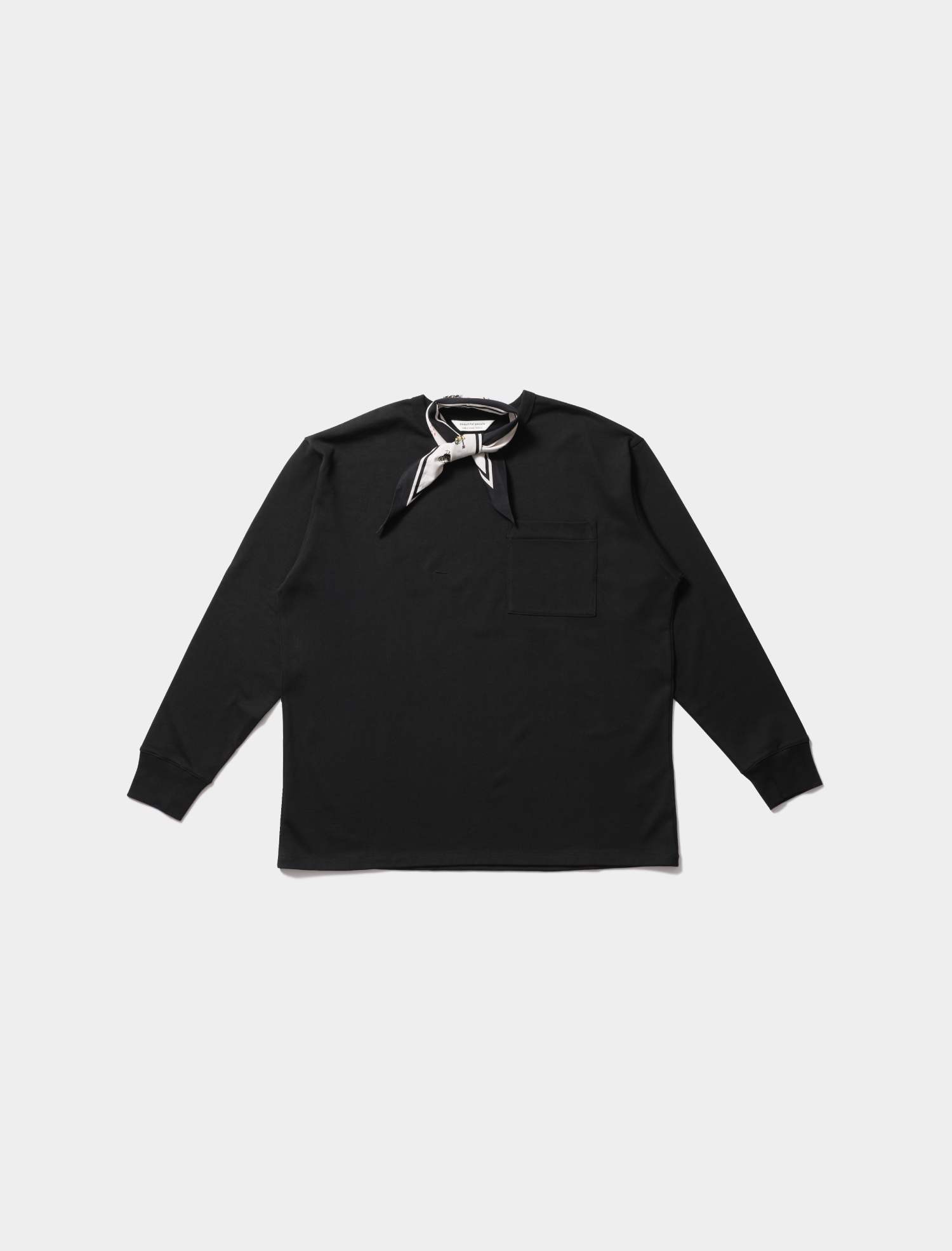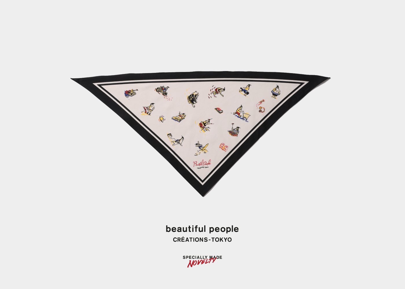 During the Holiday Collection launch period, customers who purchase 25,000 yen or more will receive an exclusive triangular scarf with Black Santa prints on a first-come, first-served basis. This item can be worn as a collar accent, pocket square, or as a pocket chief, and can be styled in many different ways.