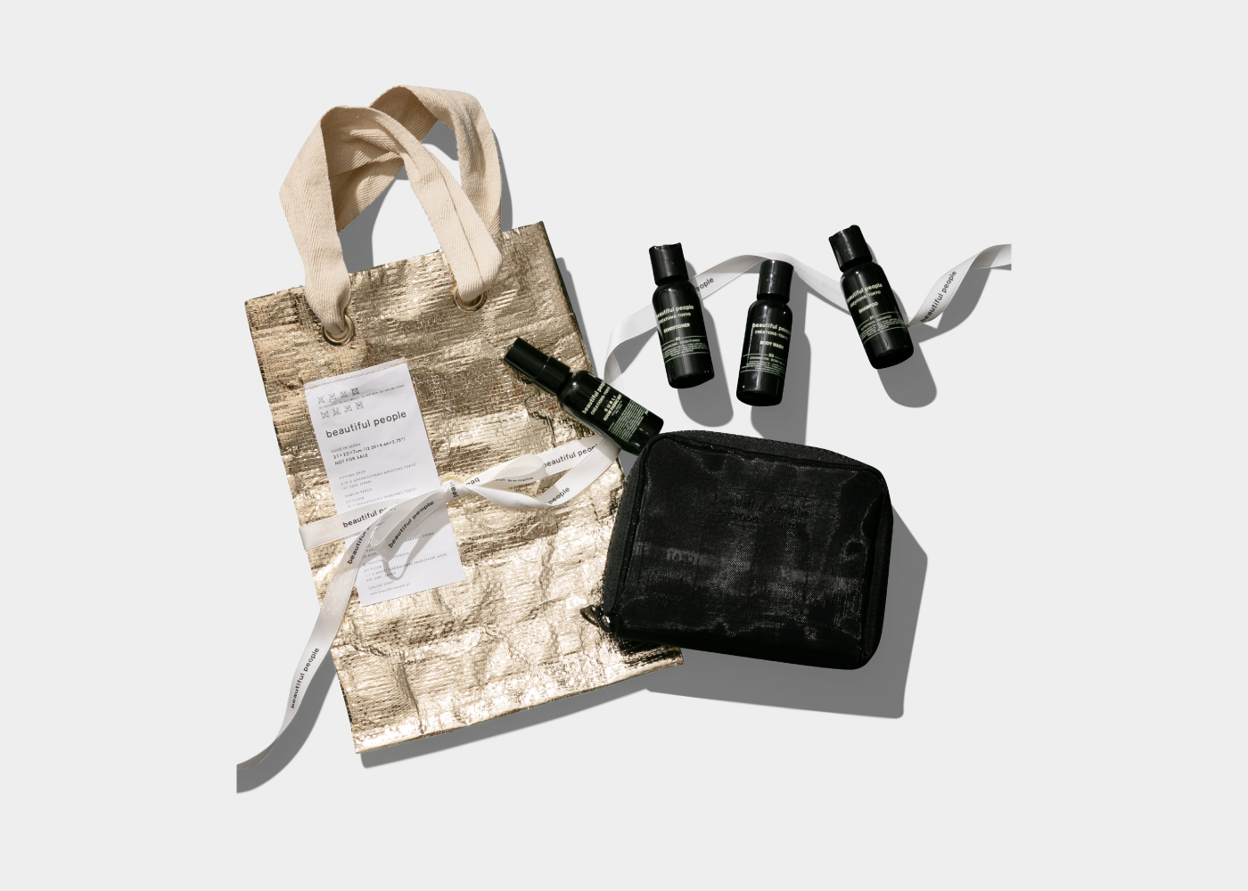 This black travel set includes Vital Material’s body care items, which are popular not only with women but also with men, and a mesh pouch by beautiful people, and is recommended as a gift for all genders.